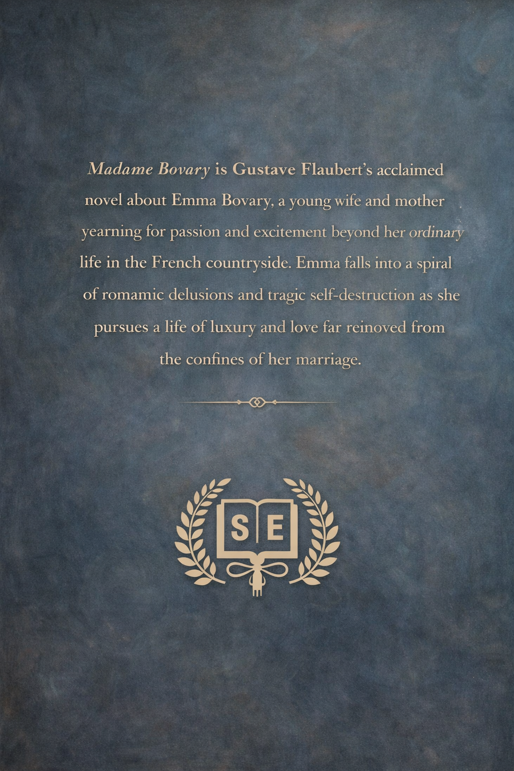 Madame Bovary, often ranked among the greatest novels of all time, is Flaubert’s first novel, and considered to be both his masterpiece and one of the most influential works in literary history, with authors from Henry James to Proust to Nabokov heaping it with praise. The novel tells the story of Emma Bovary, a commoner wife of a country doctor, and her attempts to escape the drudgery of day-to-day mediocrity by engaging in adulterous affairs and overspending on luxuries. She remains unsatisfied even though her husband adores her and they want for little, and her shallowness eventually leads to their ruin.